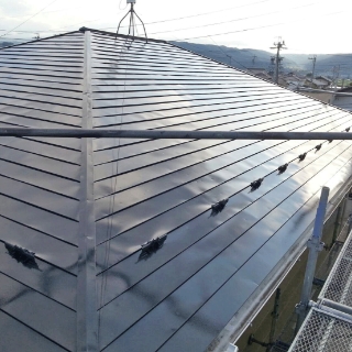 屋根の色あせやさびなどから屋根は傷み始めます。雨漏りやチョーキング(指で触った時に白い粉がつく)があれば塗り替えのサインです。トタン屋根、コロニアル屋根などの屋根塗装に対応いたします。